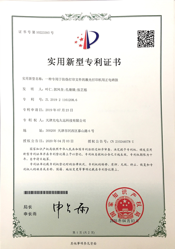 一種專用于防偽打印文件的激光打印機用正電硒鼓-實用